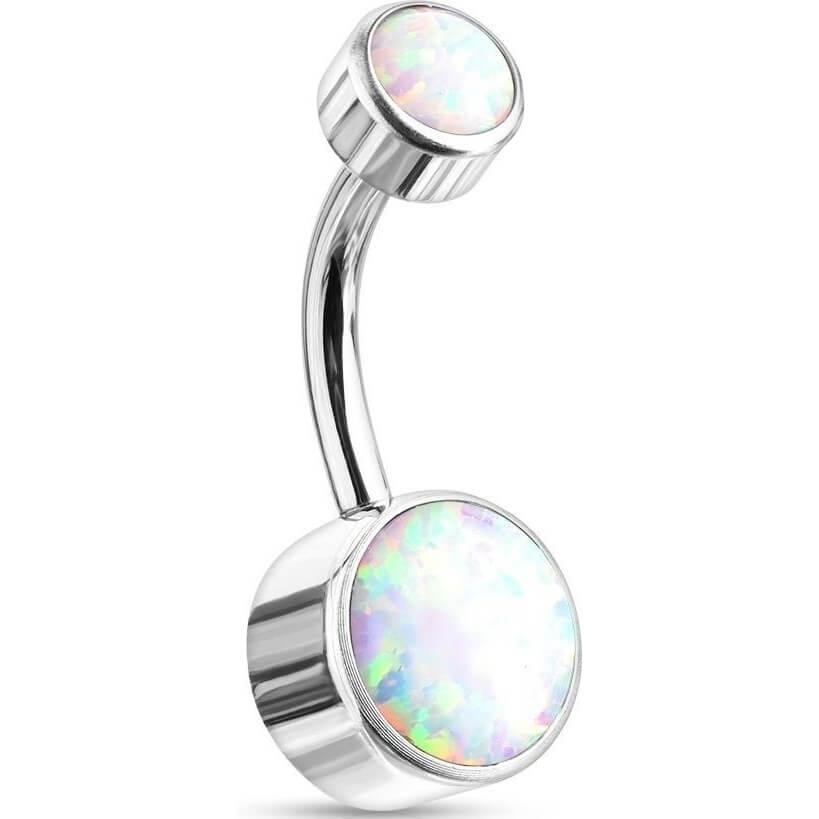 Titanium Belly Button Piercing Opal Round Silver Internally Threaded