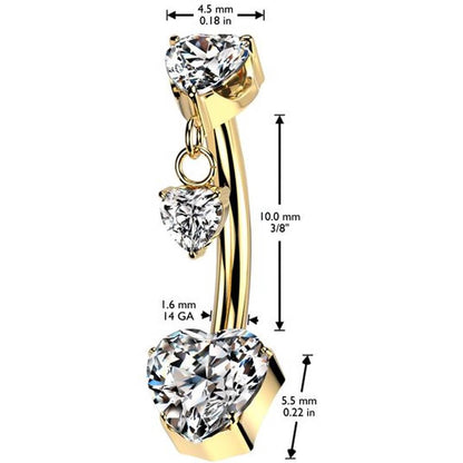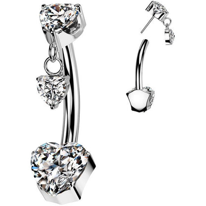 Titanium Belly Button Piercing heart zirconia dangle Push-In