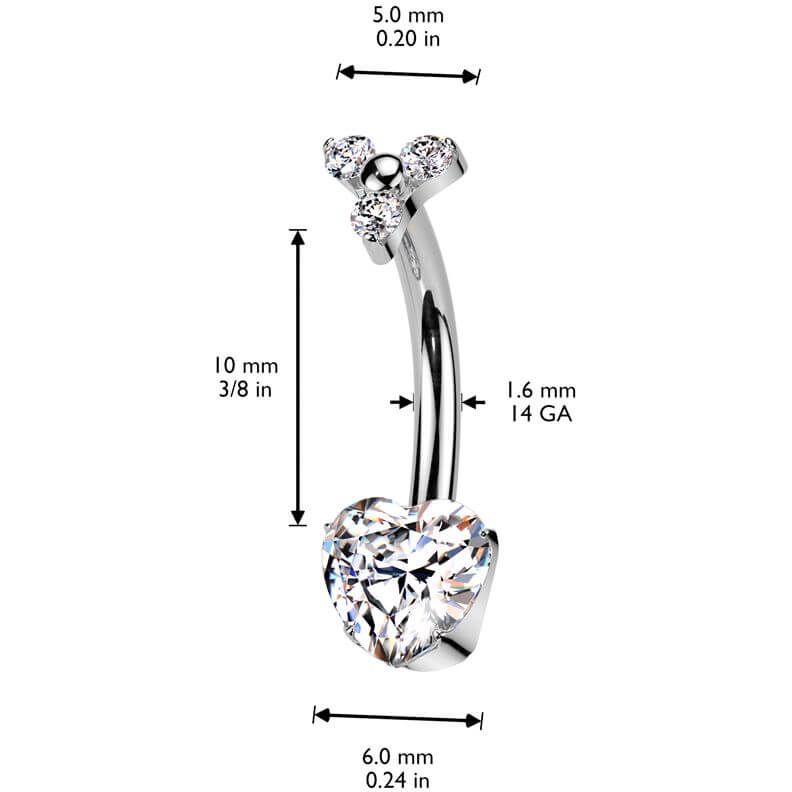 Titanium Belly Button Piercing heart zirconia Internally Threaded