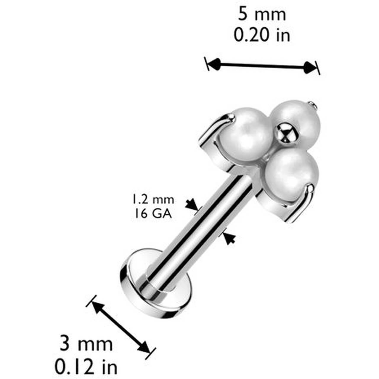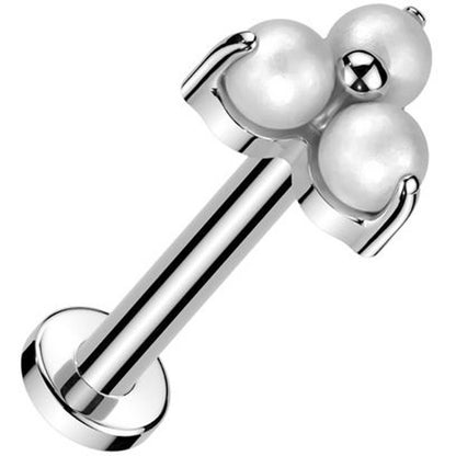 Titanium Labret 3 pearls triangle prong setting Internally Threaded