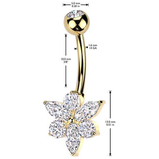 Belly Button Piercing titanium brass flower zirconia