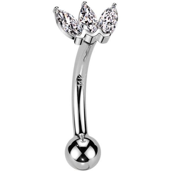 Solid Gold 14 Carat Eyebrow Piercing triple marquise cut zirconia