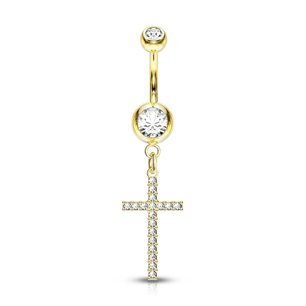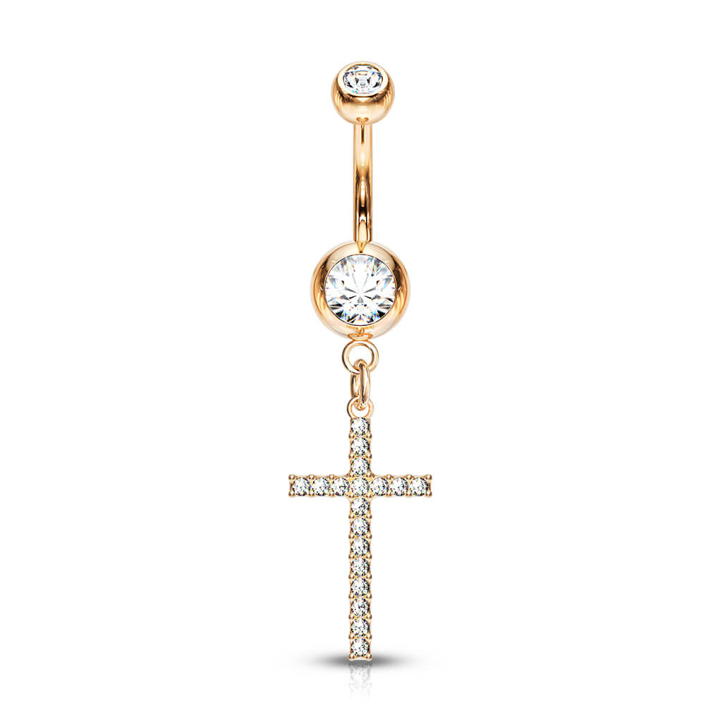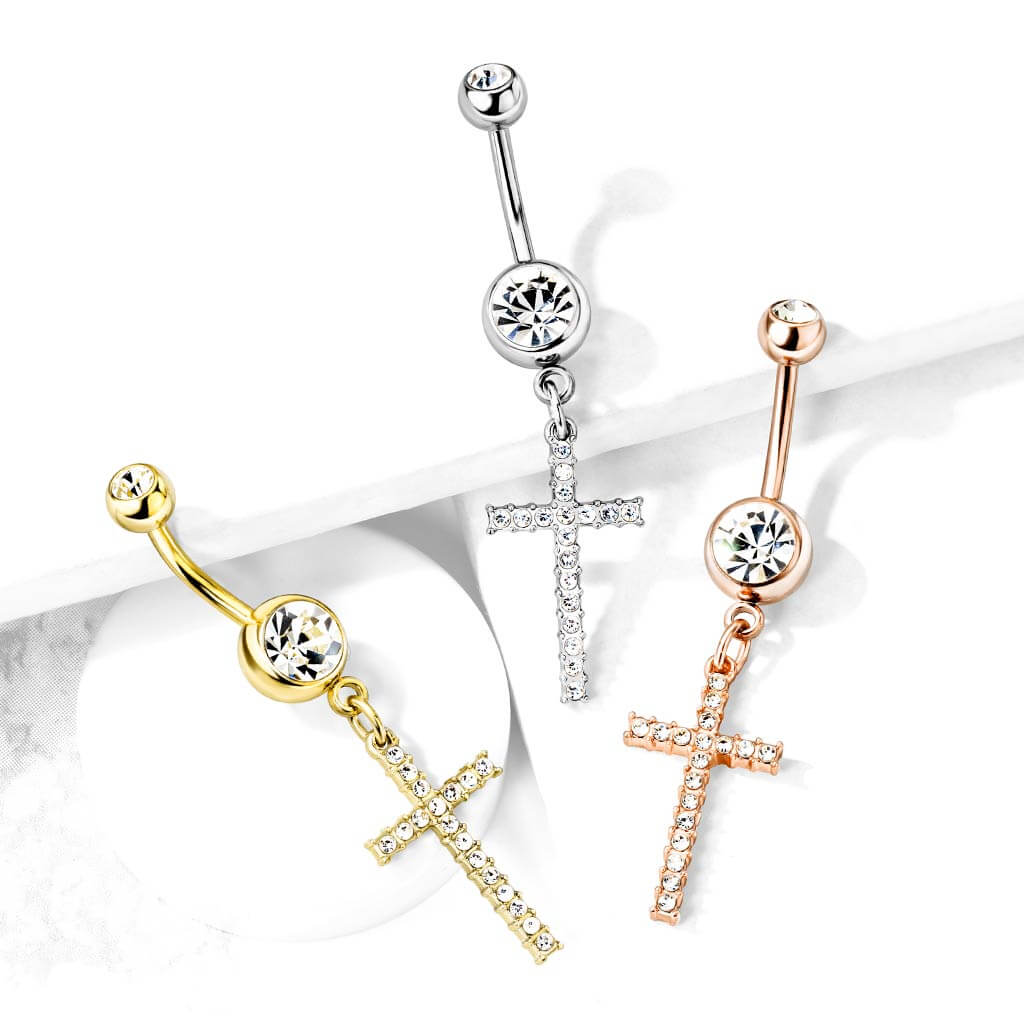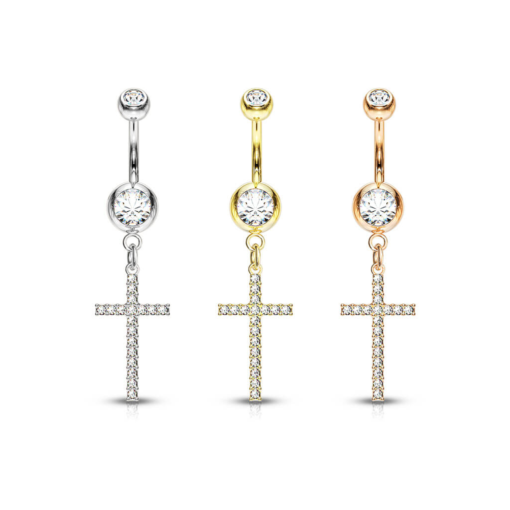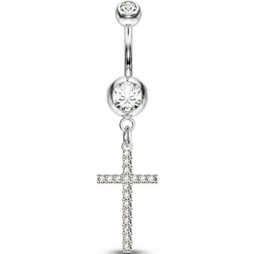 Kolczyk do pępka krzyż cyrkonia zawieszka