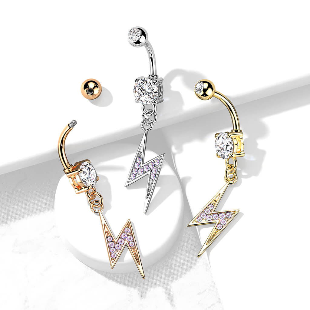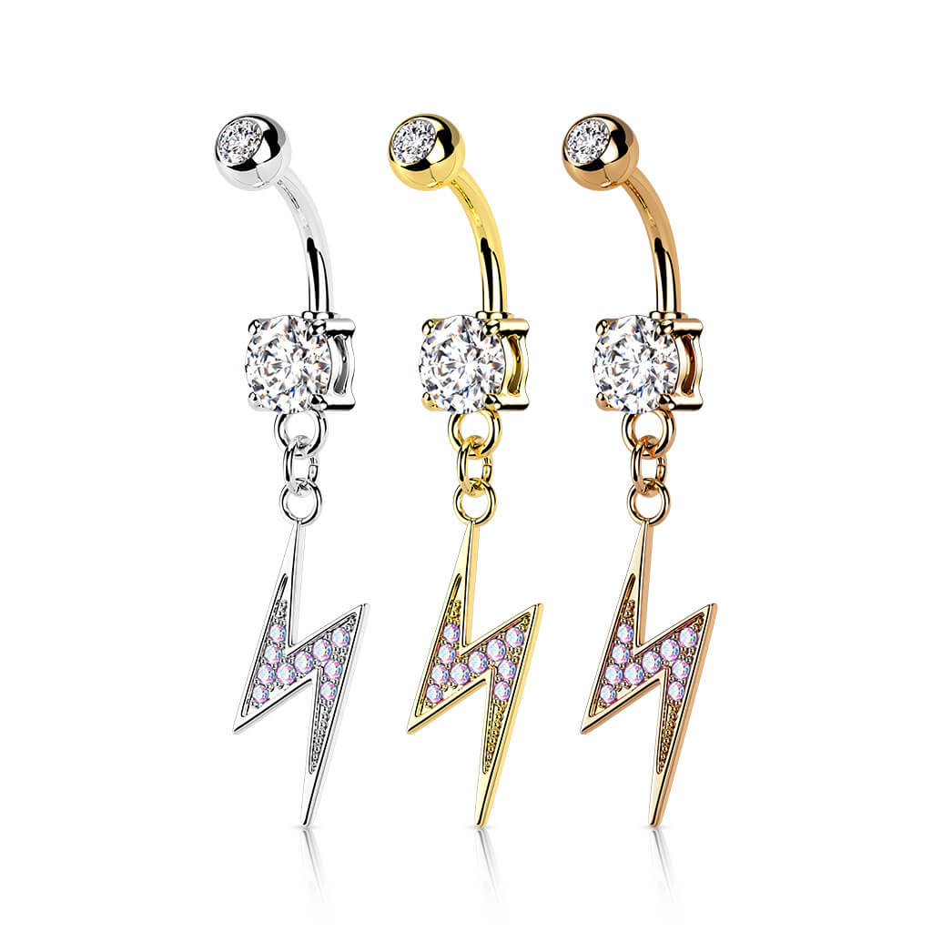 Kolczyk do pępka błyskawica zawieszka cyrkonia