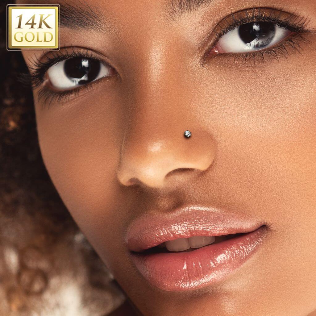 Solid Gold 14 Carat Labret zirconia bezel setting nose piercing Push-In