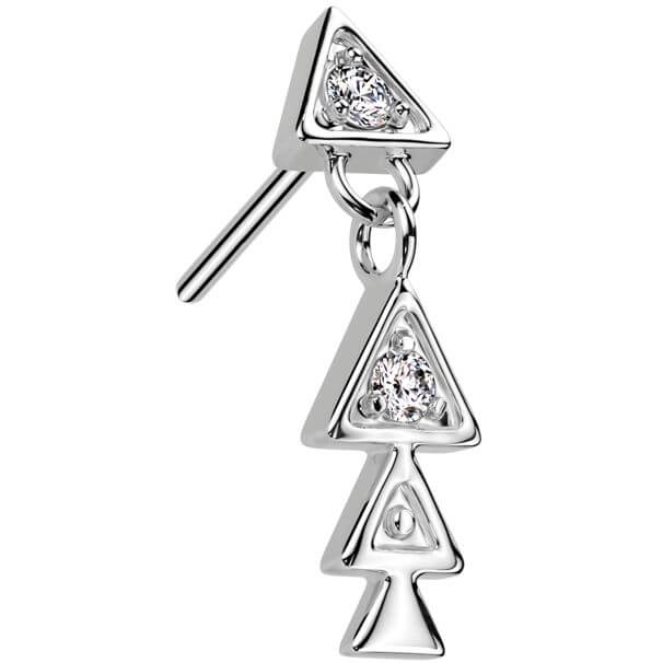Solid Gold 14 Carat top triangles dangle zirconia Push-In