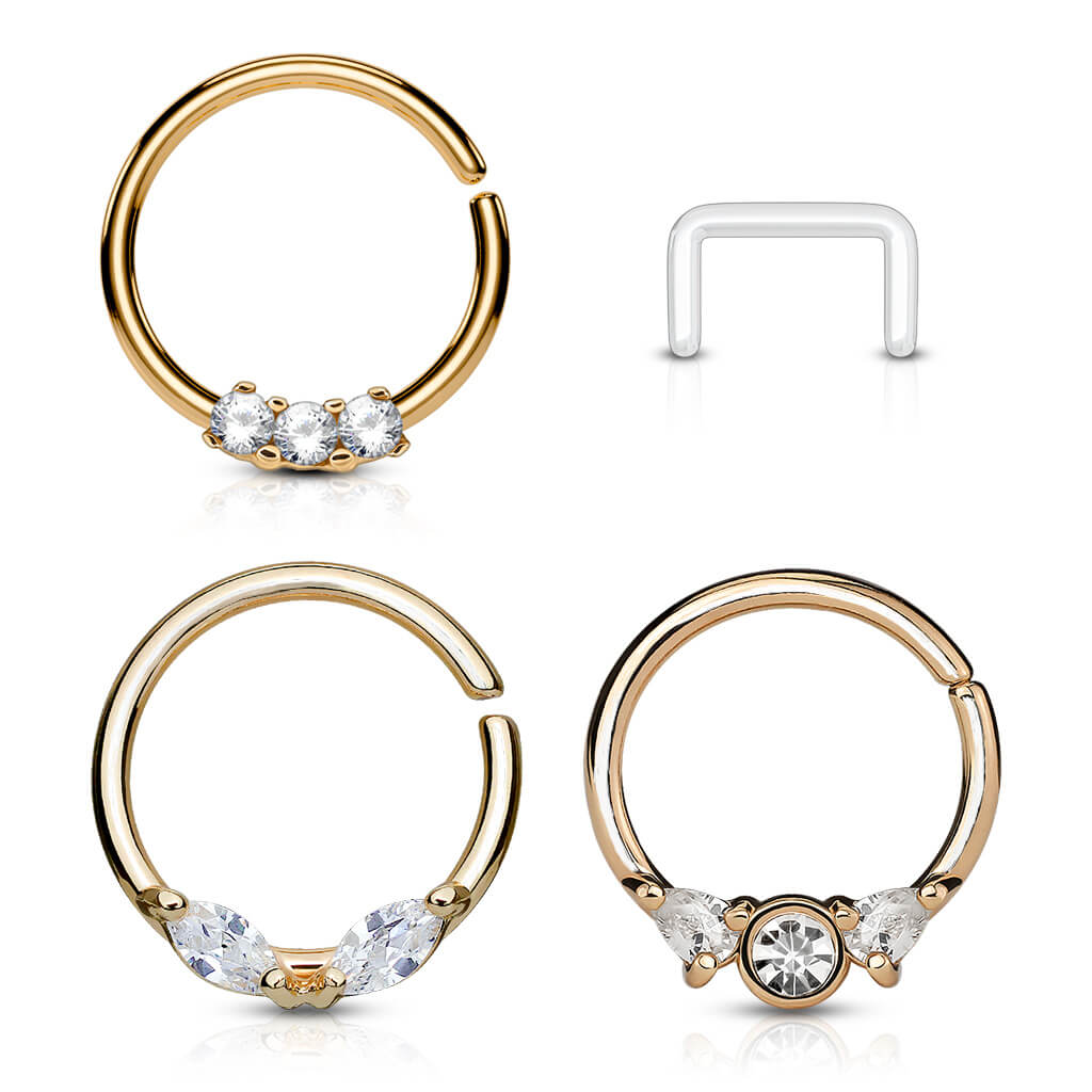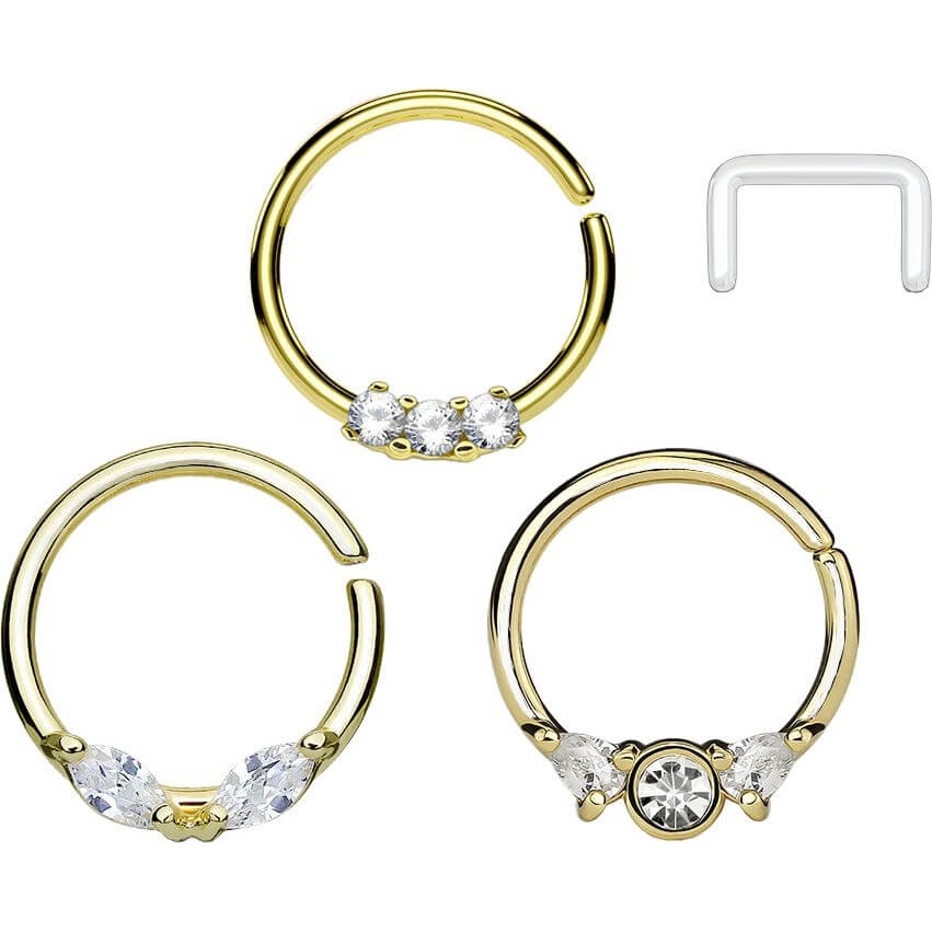 Septum zestaw kółko retainer cyrkonia złoty kolczyk rozginany